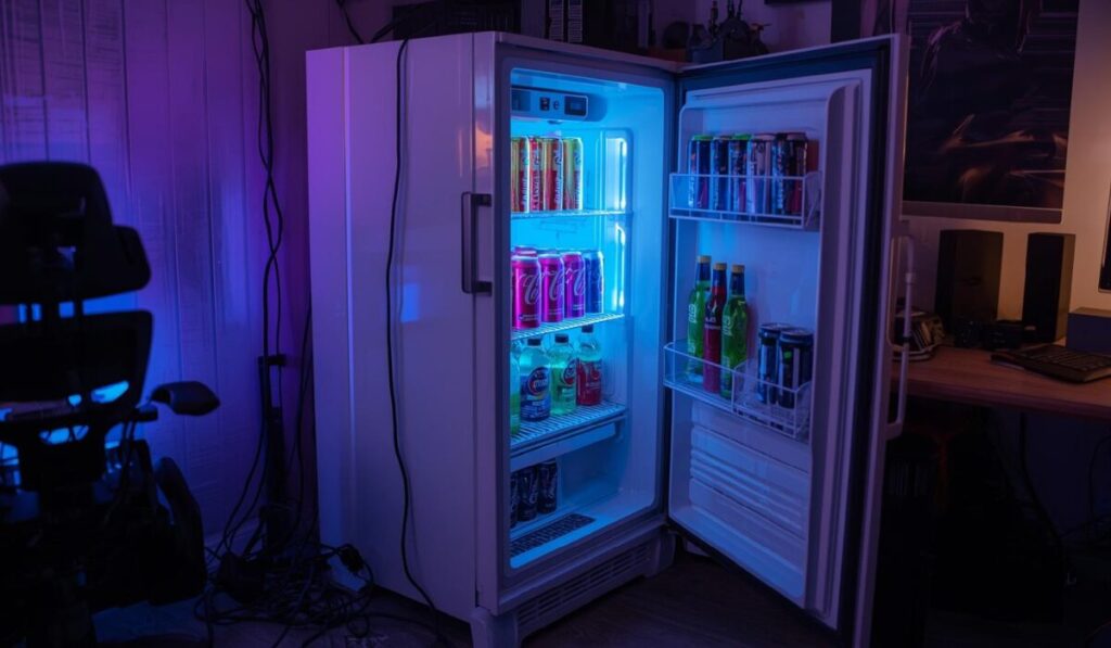 スタイリッシュなデザインと機能性を兼ね備えた、この冷蔵庫はゲーミングルームに最適です。