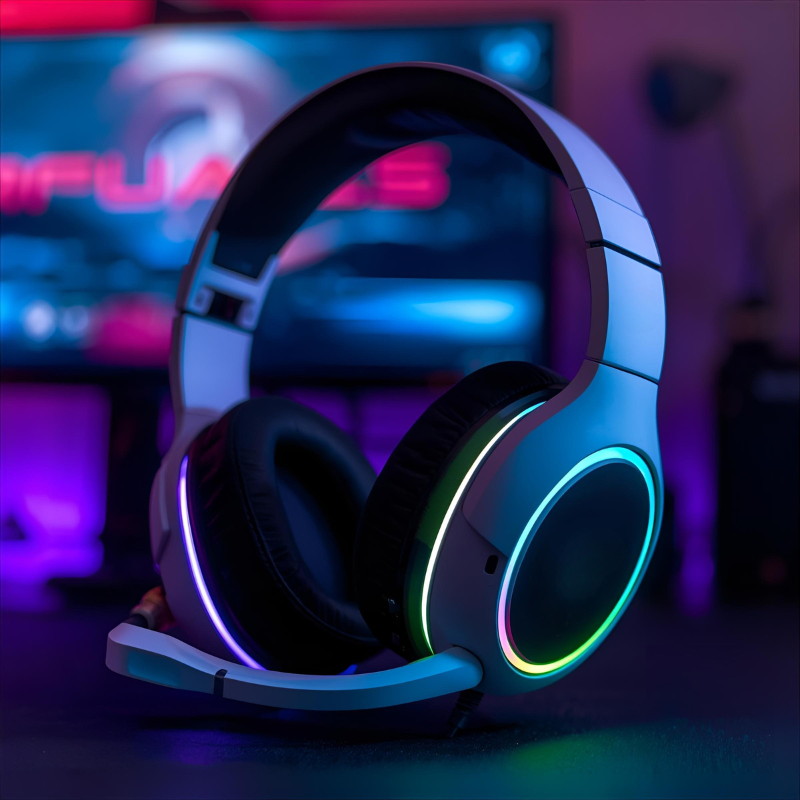 白ゲーミングヘッドホンは、スタイリッシュで清潔感のあるデザインが魅力です。