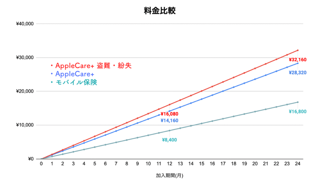 iPhoneの修理費用は右肩上がりのため、故障しても補償される安心感はやはりでかいです。