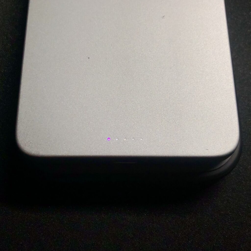 定格容量3,000mAhなので、iPhoneのフル充電1回分には届きませんが、緊急充電や短時間の外出には十分な容量です。
